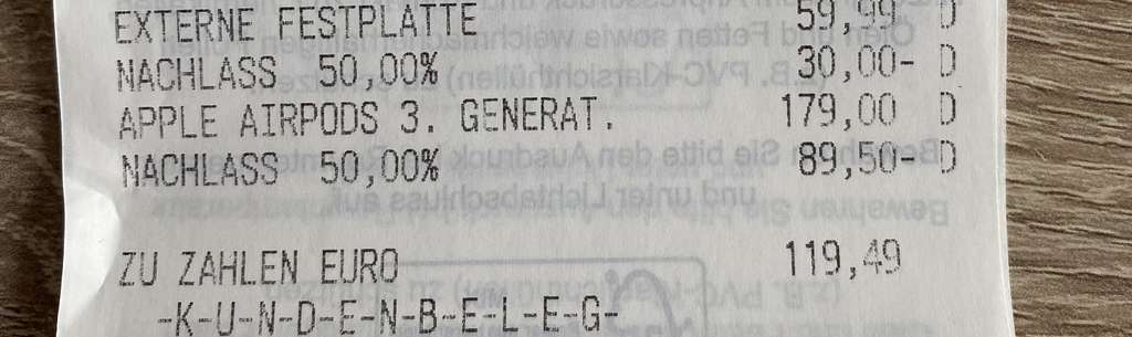 Heute habe ich die Apple AirPods 3. Generation für 89.50€ statt 179€ geschossen.